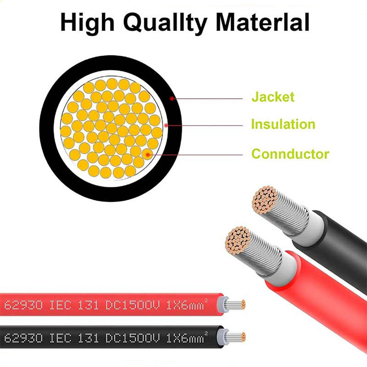 Conexão segura: O cabo de extensão possui conectores seguros e confiáveis que garantem uma conexão elétrica firme e estável entre painéis solares e outros componentes. Esta ligação segura minimiza o risco de problemas eléctricos, tais como quedas de tensão ou ligações intermitentes, garantindo um fluxo consistente de energia dentro do sistema de energia solar.